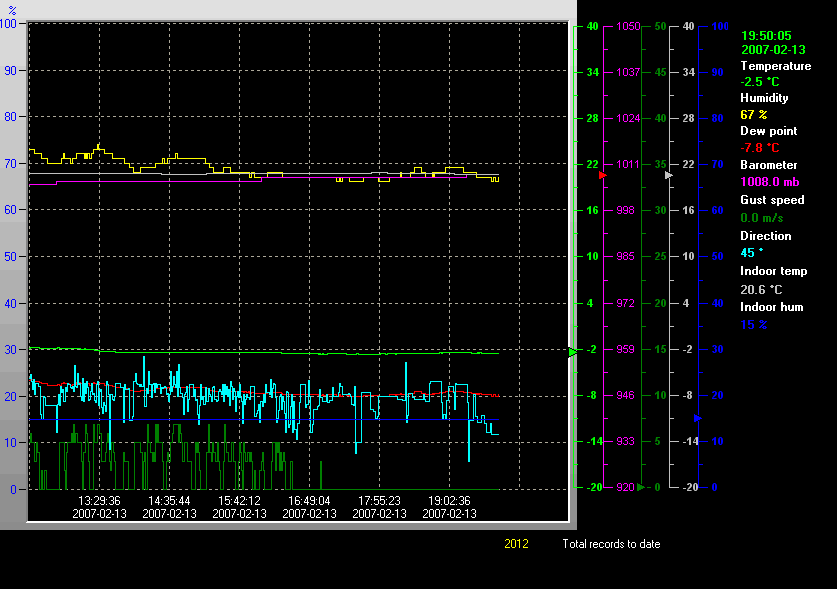 | Average windspeed (ten minute) | 1.5 m/s | Wind Direction (ten minute) | SW (225°) |