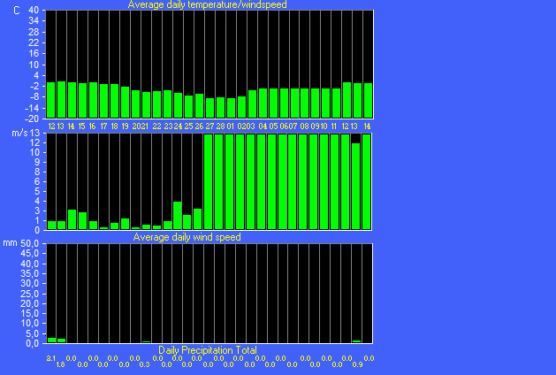 Maximum dewpoint = -0.9°C on day 13 at time 04:00